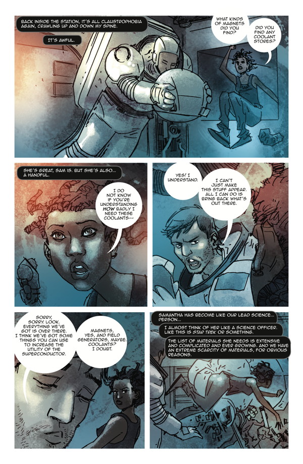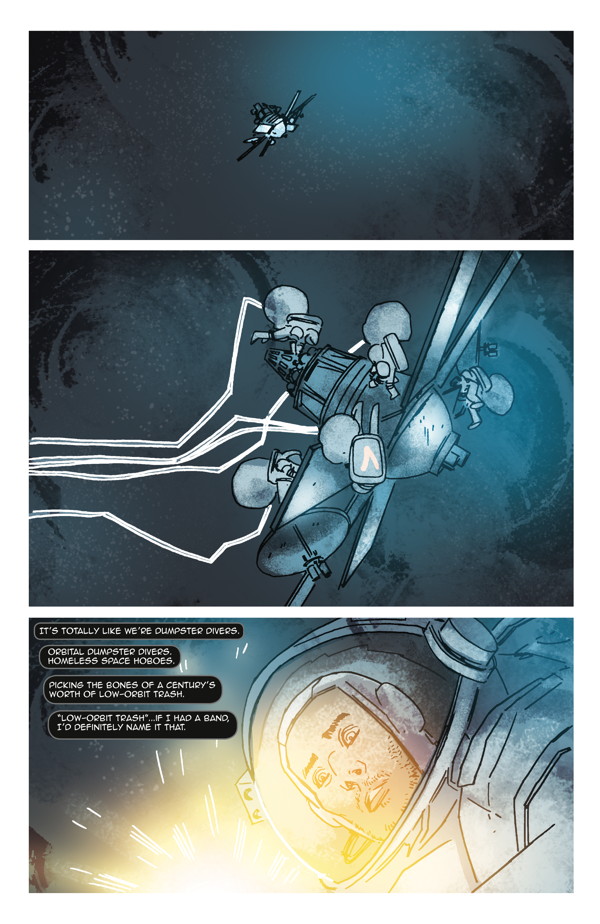 On Earth, a hacker causes an economic meltdown in what seems to be a rescue plan to save the vitros, who are trapped in space on a failing satellite.