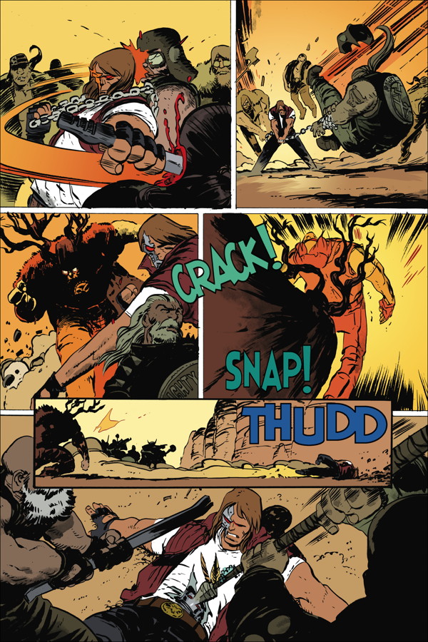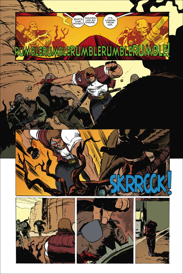 In this action-packed third issue, Vandroid gets personal! An all-out brawl with the Mighty Oak Biker Club has Vandroid discovering who he really is . . . and it's not what he expected. But when his best friend is in danger, will Vandroid be able to withstand the brutal experimentation of the R&D Gang, or will he become a wiped motherboard?