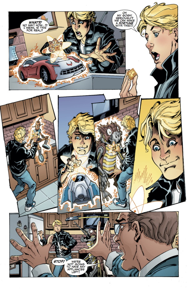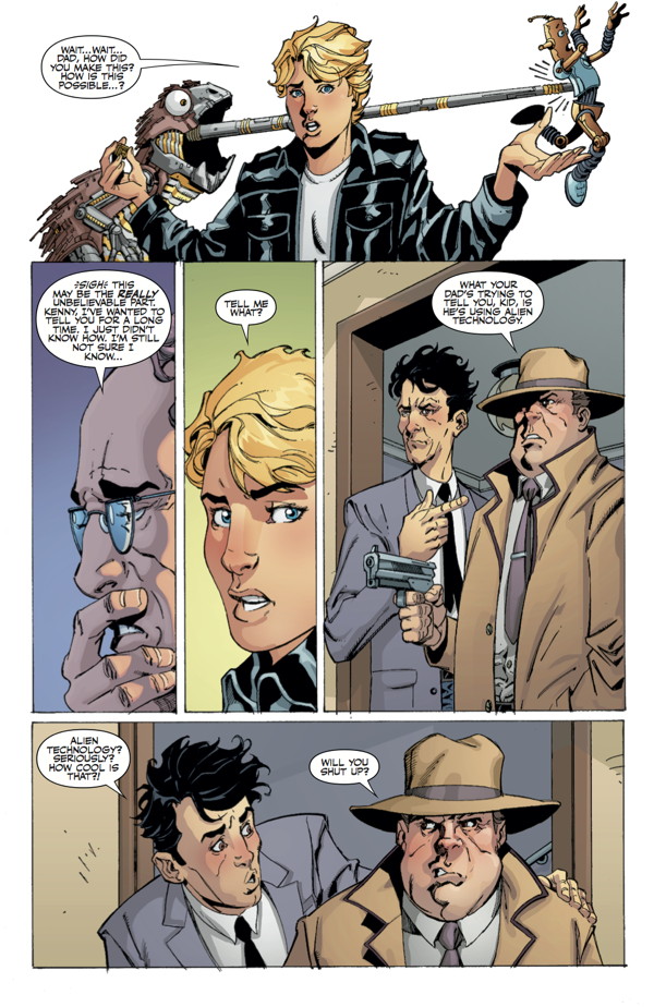 What if you had a piece of technology that created anything you could possibly want, and all you had to do was imagine it? What would you wish for? For Kenny Logan, his first wish is to survive his eighteenth birthday! His unique matter-reinterpreting device has attracted the attention of a bumbling Nazi scientist with plans for world domination and an elite government agent who is hell bent on acquiring the device to stop an alien invasion at any cost. Aaron Lopresti delivers a comical coming-of-age tale in a fantastic sci-fi universe!