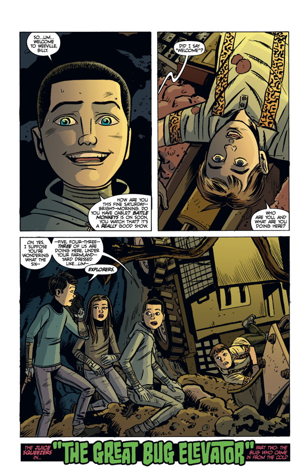 When inquisitive Billy Farnsburger stumbles upon a group of his classmates digging around a series of intricate tunnels, it threatens to expose the covert Juice Squeezers before their secret mission can be accomplished. Oh, and don’t forget the dog-sized bugs Billy keeps seeing! This new town is definitely weird!