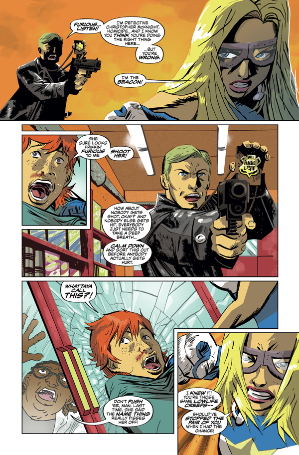An innocent man is dead because of Furious, and she's not going to rest—or feel less guilty—until she finds his killer! Returning to the scene of the crime, she takes out her anger on any punk in sight, but is she after justice or just trying to bury her guilt beneath a beating?