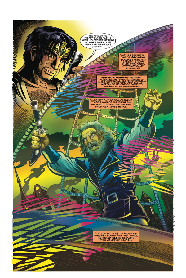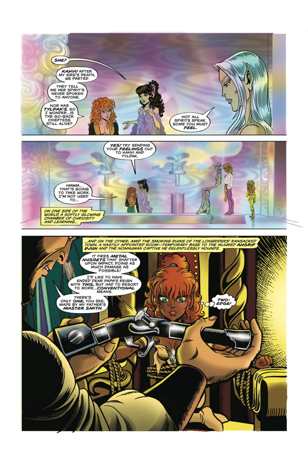 Years ago, the human tyrant Grohmul Djun made an unholy alliance with the mad half-elf, half-troll tinkerer called Two-Edge. Now, the Djun’s ambitious heir, Angrif, holds the key to a power never before seen on the World of Two Moons—a power that Chieftess Ember of the Wolfriders fears might destroy her world forever.