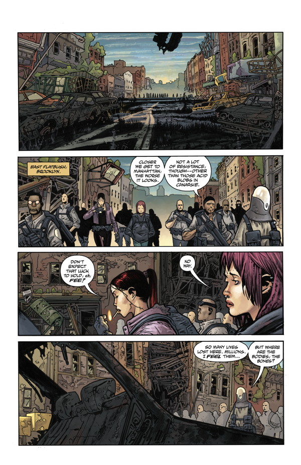 Two B.P.R.D. teams make their way through the monster-filled streets of a Manhattan wasteland in order to reach the Black Flame’s fortress and take down his army.