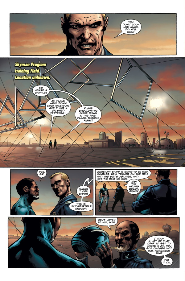After an embarrassing defeat at the hands of Captain Midnight, a drunken Skyman accidentally kills an innocent man! Needing a new face for their initiative ASAP, the Skyman Program turns to US Air Force Sgt. Eric Reid: a wounded veteran on the ropes, looking for a new lease on life.