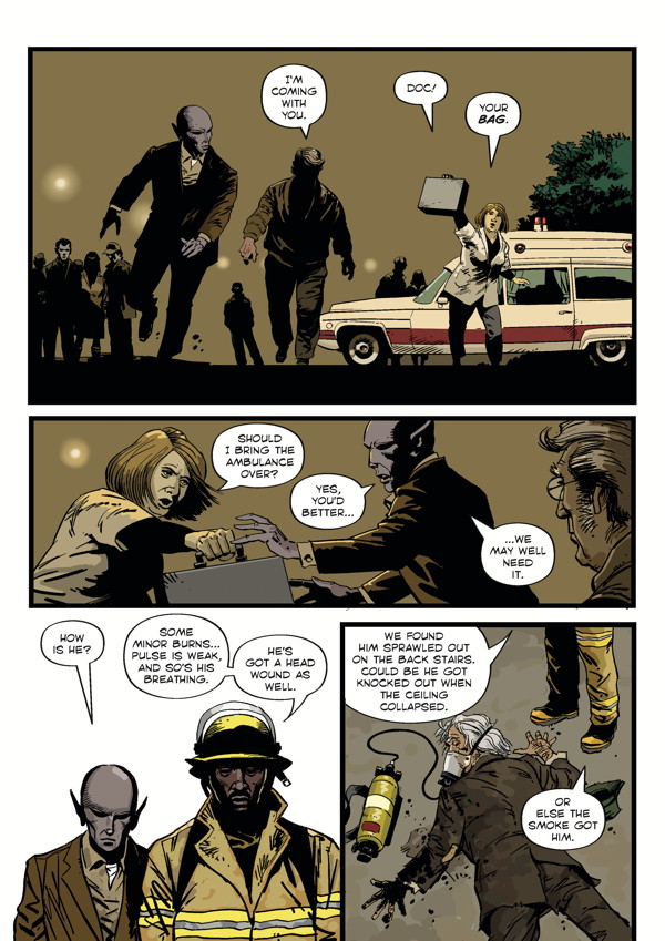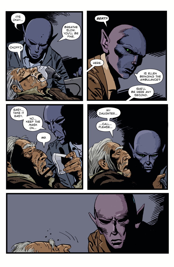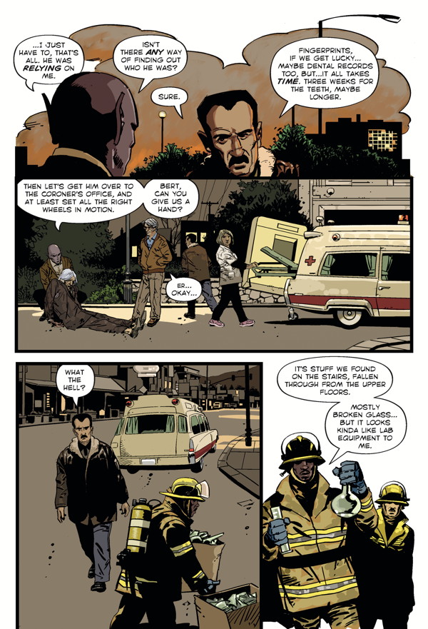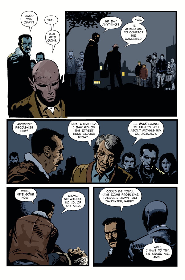 A fiery explosion and a sudden death in the small town of Patience, Washington—but is it an accident or a calculated murder? The stranded alien who’s known as Dr. Harry hunts for a dead drifter’s daughter, and the local police look into a possible drug ring! Peter Hogan (Tom Strong) and Steve Parkhouse (Doctor Who) continue their unique, acclaimed science-fiction/murder-mystery series!