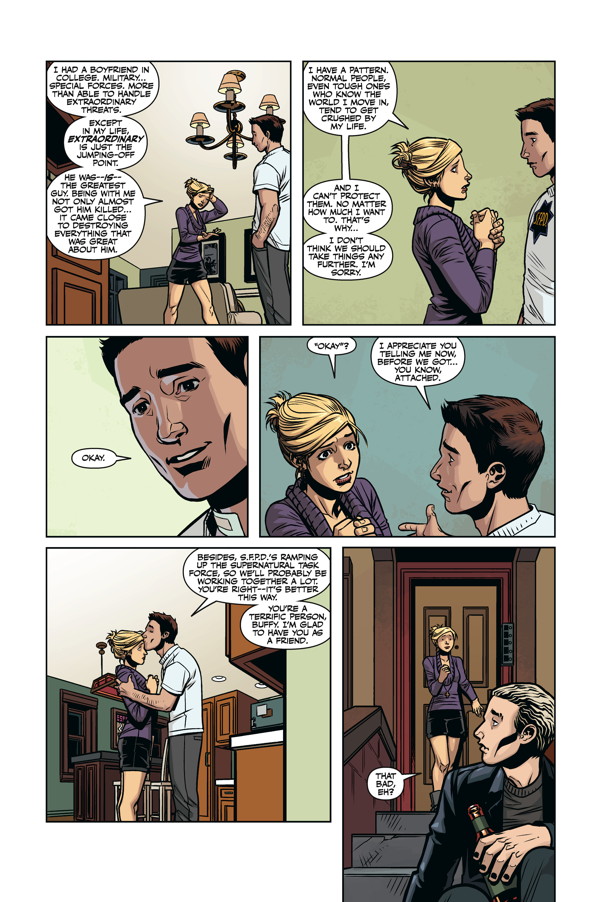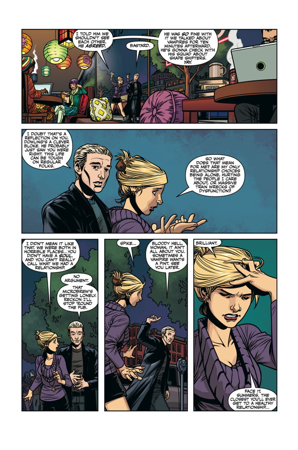 The Scoobies are back—including li’l Giles! Revelations about a new kind of vampire menace and the blank Vampyr book have only just begun. Everyone has a job to do, and for Buffy, it’s treading the road of past relationships! Lucky girl . . .
