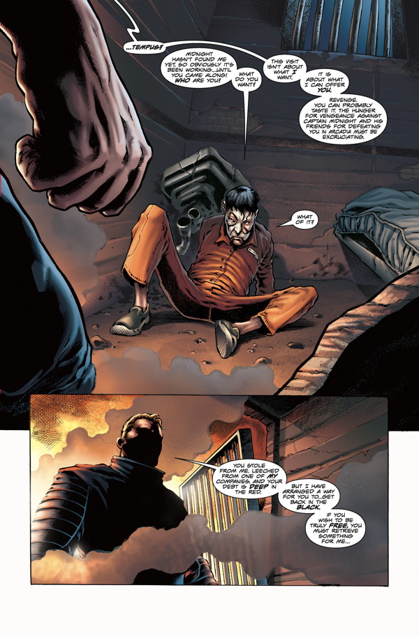 The madman responsible for the assassination of Arcadia’s police chief in Two Past Midnight escaped . . . and now Tempus is back! Addicted to technology, Tempus wants Jim Albright’s inventions . . . and he’ll happily kill to get them! No one knows the Secret Squadron headquarters better than Captain Midnight, but he’ll need all his cunning to protect his home from this lunatic!