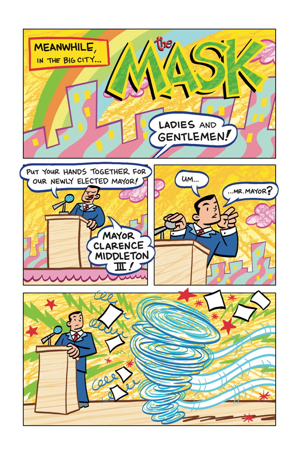 After the fiasco in the zoo, the mayor tries on the Mask! Now as Mayor Mask paints the town green, the once-quiet burg suddenly becomes the most exciting and crazy place on the planet! Find out how it feels to have the Mask running things! Fun! Crazy! And a little scary!