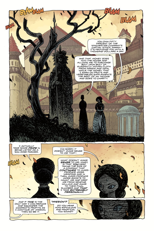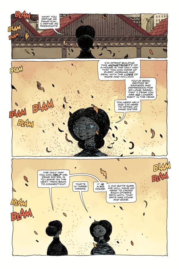 The chaotic construction is no longer enough to keep Sarah’s ghosts at bay, so she tries something more extreme to ease her conscience. Peck’s nightmares are growing worse, too. Brought together by their dark visions, the heiress and the outlaw are getting closer, but Sarah’s sister doesn’t like it one bit.