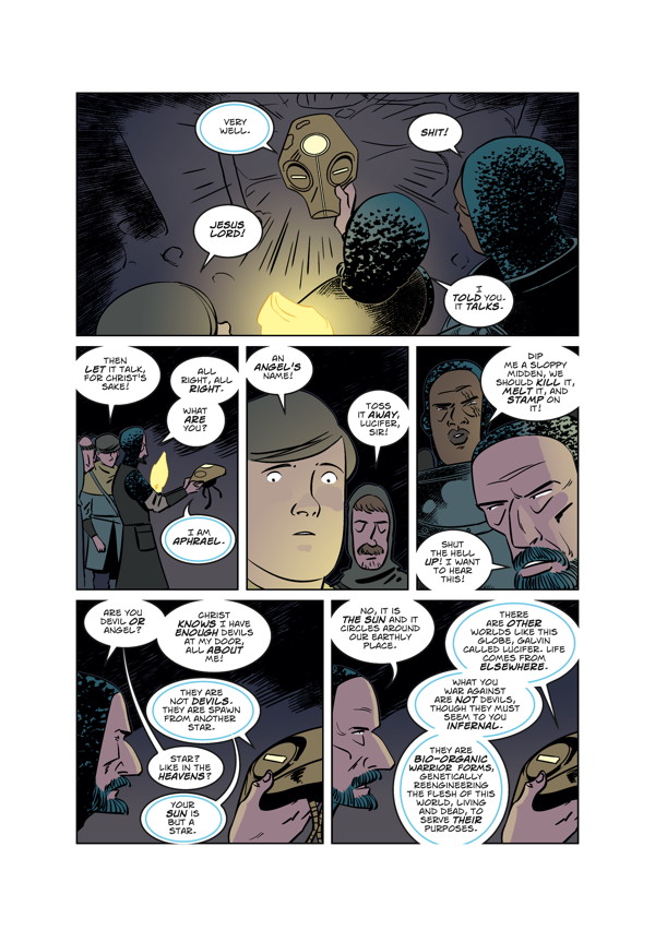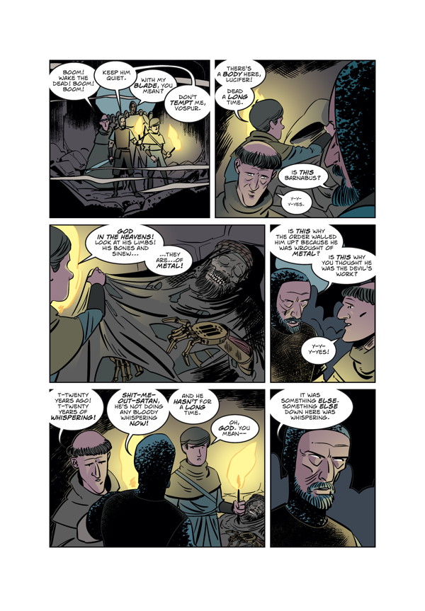 Fortified in a secluded monastery, the heathen mercenaries discover a strange new ally in their war against the demons from the sky. But this new discovery reveals a conflict much older—and much more deadly—than any of them could have imagined!
