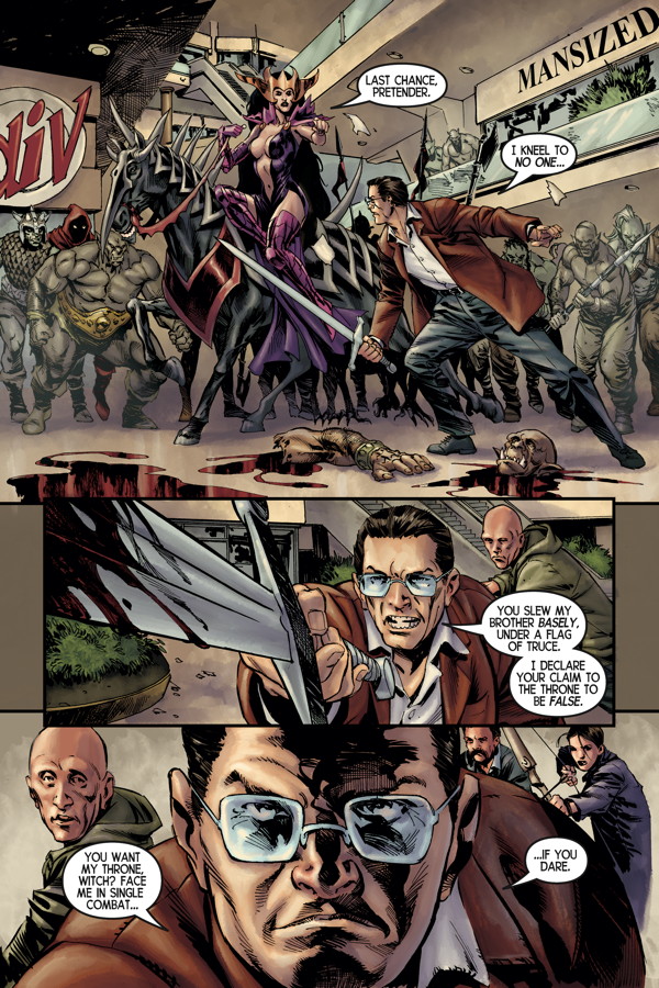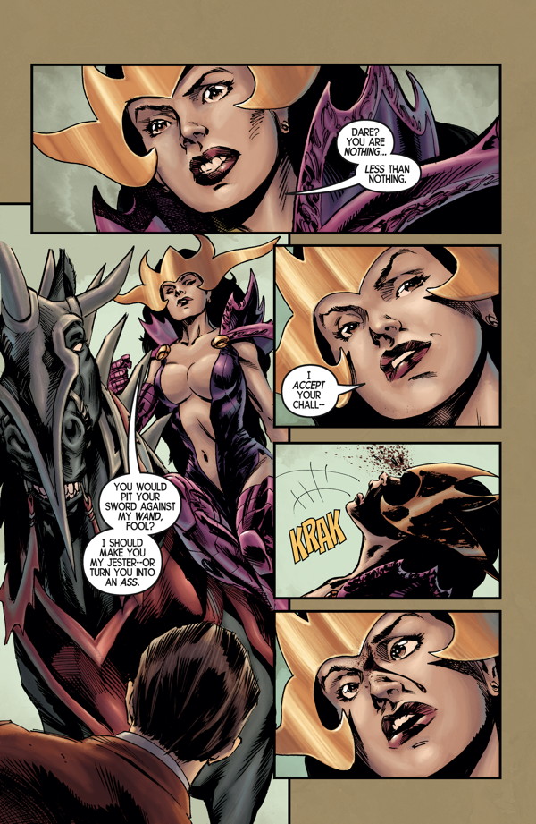 The conclusion to the first King’s Road story arc! On the run after being ambushed by the witch Malicia’s army of monsters, Don and his family search for a secret doorway into the magical land of Avalon. As Malicia moves to put an end to Don’s royal clan, an old family friend comes to the rescue!