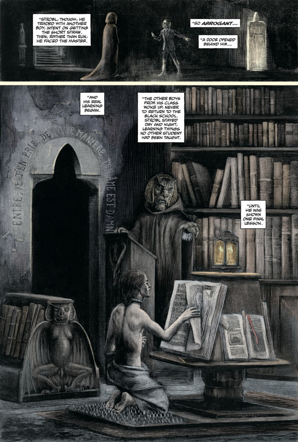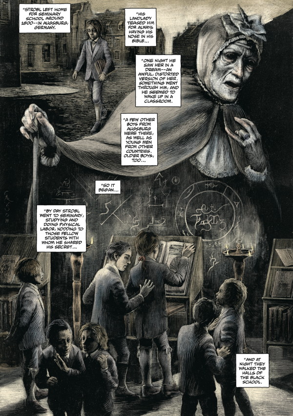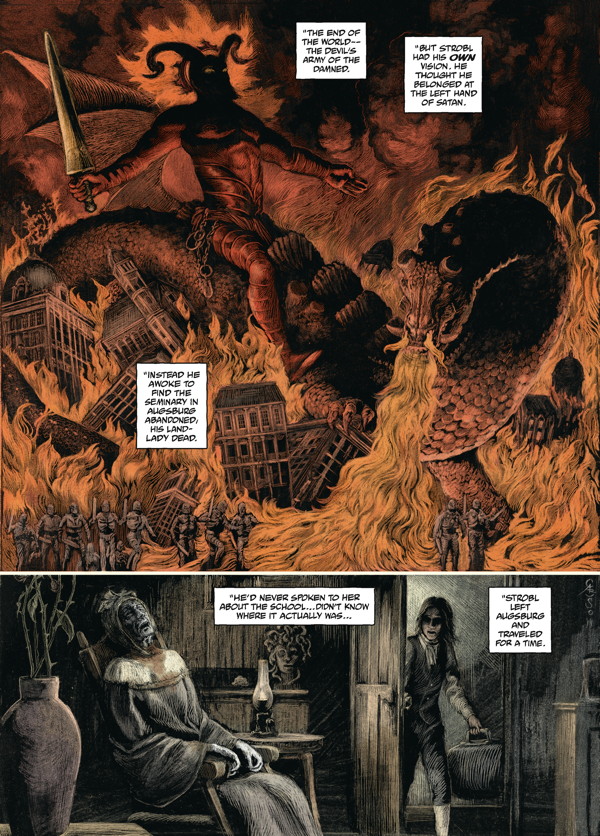 Gallery artist Santiago Caruso presents the history of Western occultism as seen through the life story of a nineteenth-century necromancer who’s been to Hell and back and is possessed of a single goal—ensuring his place at the end of the world, standing side by side with the devil himself.