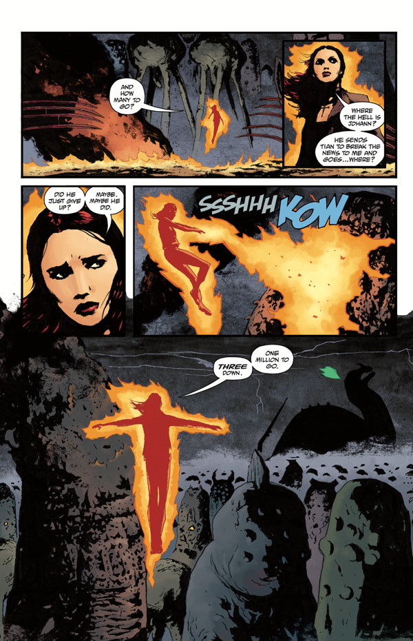Liz Sherman blew up the center of the earth to stop the spread of the frog men with which the Black Flame planned to overrun the world. Although she killed that Black Flame, the devastation Liz wrought brought about a new Black Flame and a more terrifying worldwide wave of monsters. Facing an uncertain future, the BPRD count up their casualties as Hell on Earth comes to a close.