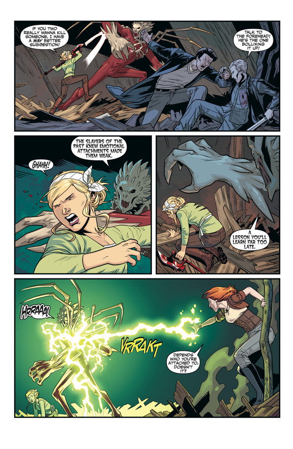 The Slayer’s advantage against a powerful demon—having super-awesome friends—may be her undoing as Archaeus pits Spike and Angel against one another.