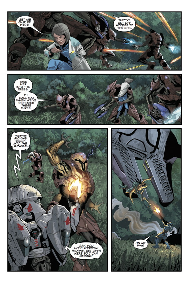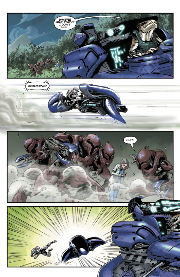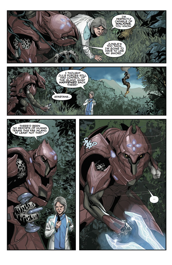 It’s total war as Dr. Catherine Halsey and Covenant Commander Jul ’Mdama launch their final assault to regain control of the all-powerful Forerunner Janus Key. The thrilling Halo saga continues in this ongoing Halo 4 storyby Duffy Boudreau (BlackAcre) and Douglas Franchin (Person of Interest).