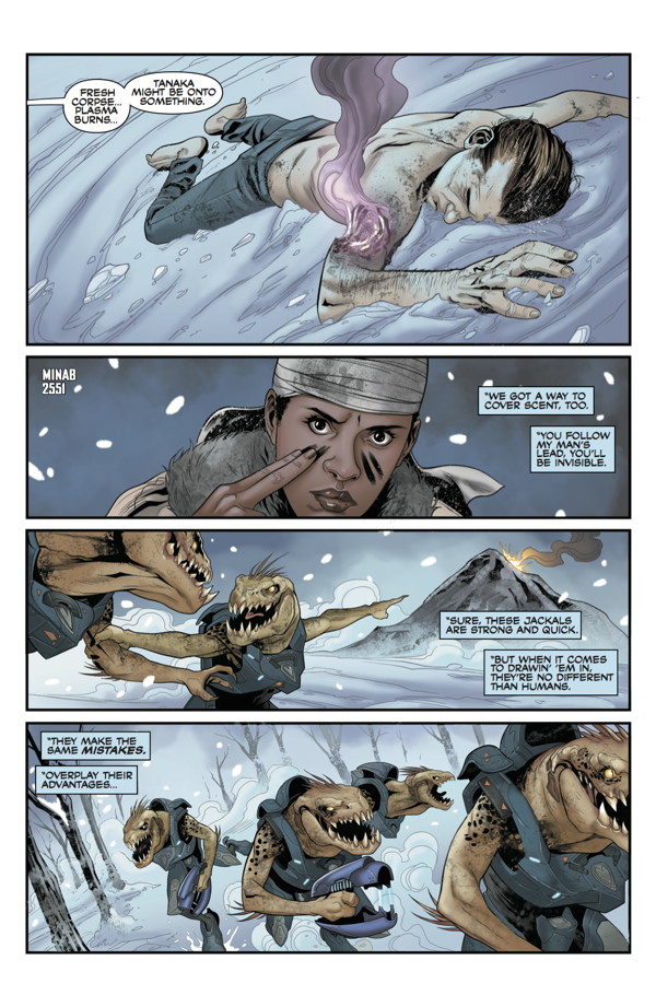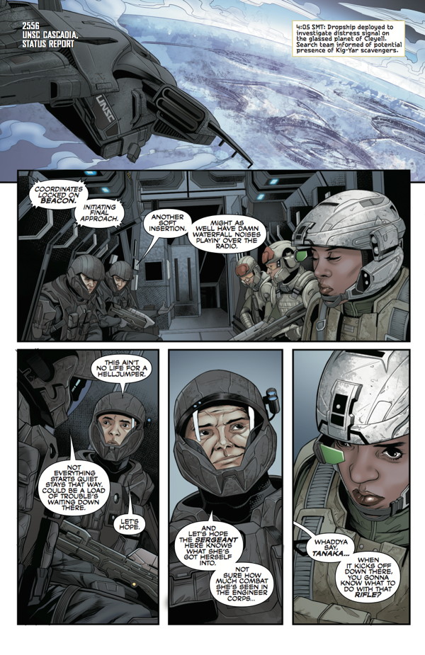 “The Glass Horizon, Part 2”—On a Covenant-ravaged colony world, past and present converge for a tenacious young soldier on a high-risk search-and-rescue mission—the gritty conclusion to another chapter of the Halo saga by Duffy Boudreau (BlackAcre) and Douglas Franchin (Person of Interest).