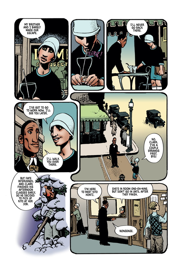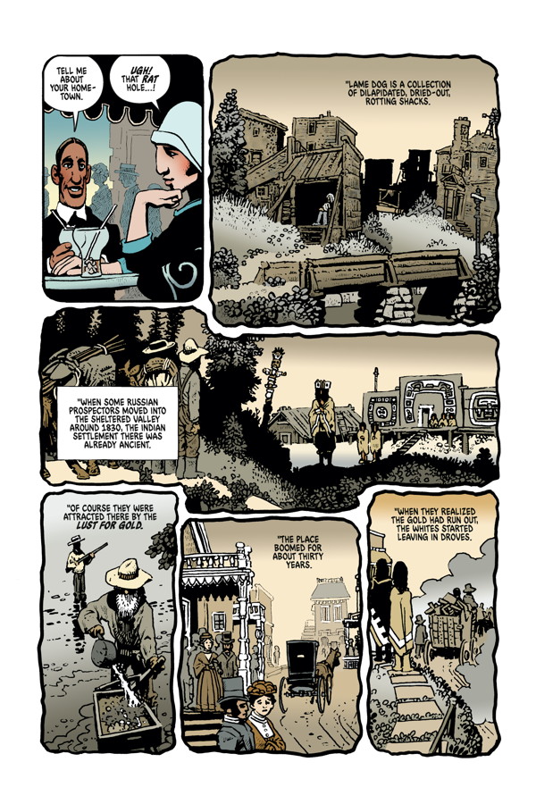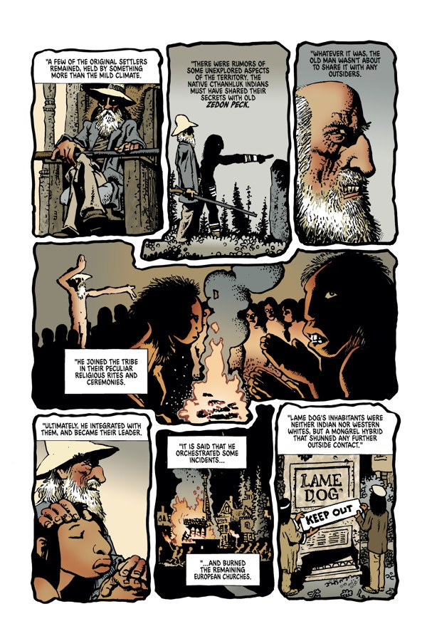 A town hidden in the dark woods holds frightening secrets and even more frightening residents! The one “gentleman” in a town full of subhumans offers some answers, but no safety, for our wayward hero.