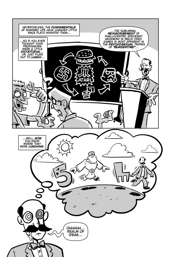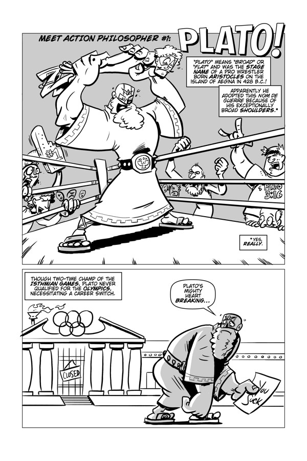 Get a taste of Fred Van Lente and Ryan Dunlavey’s award-winning, best-selling Action Philosophers! Read about Plato, the wrestling superstar from ancient Greece, and learn the lessons of Nietzsche, the original übermensch!