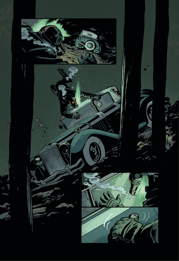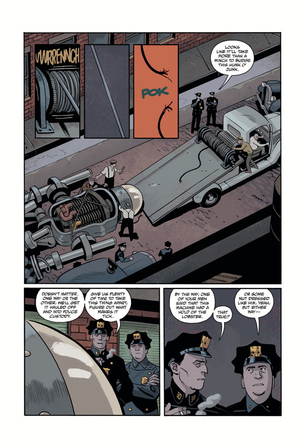 The face-off against giant robots continues as Lobster Johnson’s investigation leads him to a woman whose story reveals the ancient origins behind the machines’ gleaming exteriors.