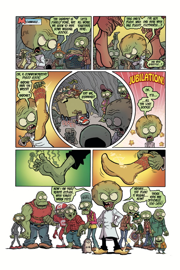 Lawrence, the mystical Boom Boom Mushroom, appears at last! Will Crazy Dave and the kids convince him to help save Neighborville? An explosive underground battle closes our latest story arc! Also: Paul Tobin and Jacob Chabot give us a look at Zomboss’s secret collection of stylish socks. This issue includes bonus stories by PopCap Games senior creative director Jeremy Vanhoozer!