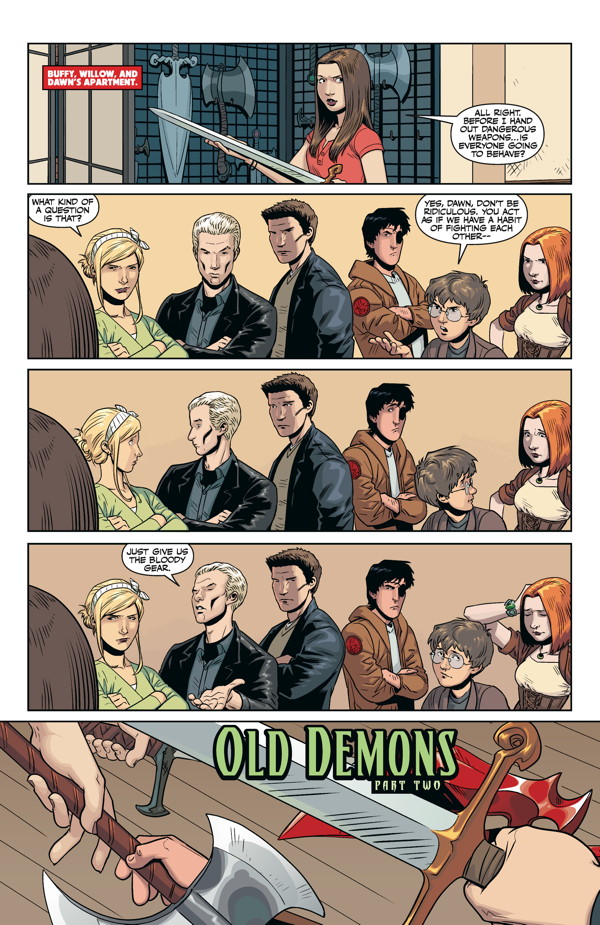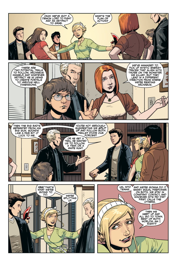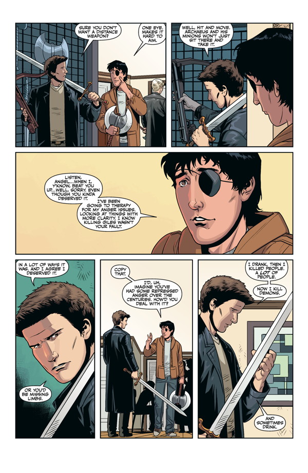 Tensions are on the rise as the gang goes in search of an ancient enemy—Archaeus. Split into teams, Angel and Xander are able to connect over themes of betrayal and love lost, while Buffy pushes Spike to keep his insecurities in check. But they quickly discover there are much more dangerous things to battle as they close in on the demon lord.