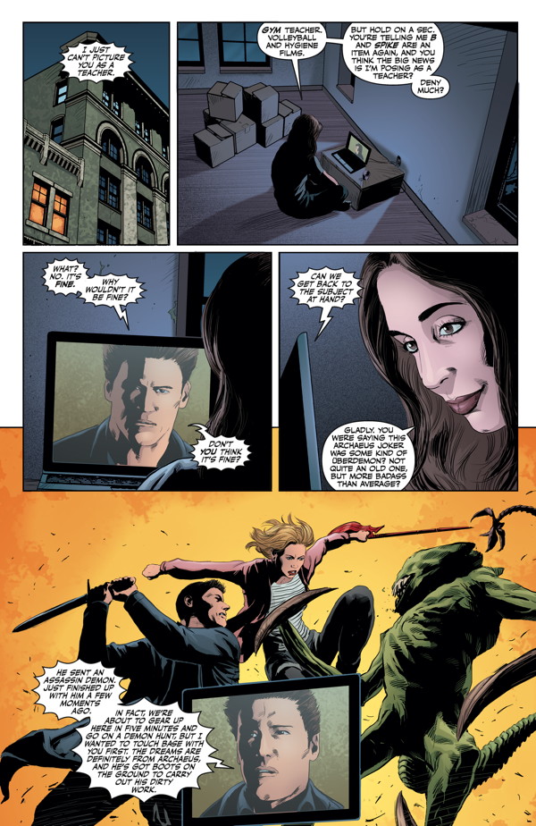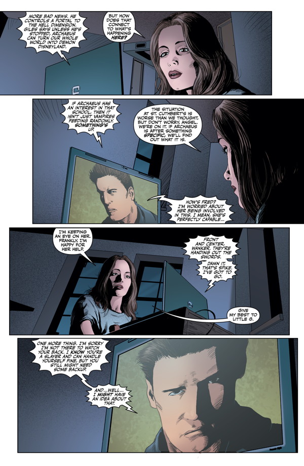 Investigating Angel’s nightmares and real-life missing students, Faith and Fred have discovered a group of teenage vampires at St. Cuthbert’s Preparatory School, where the girls are working undercover! Delving deeper into the origins of the teen vamps, Slayer and scientist are walking a dangerous road when they uncover a fearsome foe!