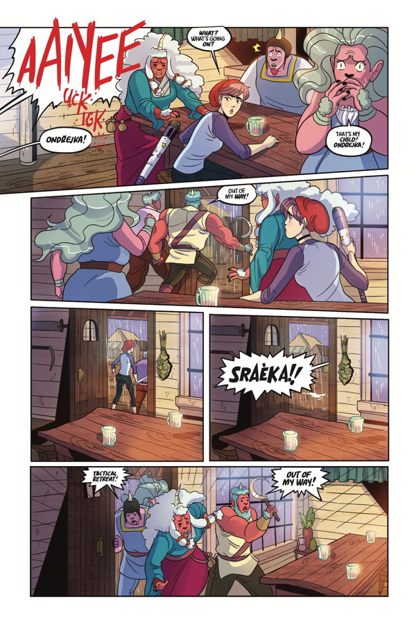 Before Mae’s sister Abbie was known as Ani, Fallen Queen of the MHoukové, she was just a punk kid running away from problems at home. This standalone issue, illustrated by guest artist Paulina Ganucheau, shows how something, or someone, in the magical world of Cimertern transformed Abbie into the warrior she is today.