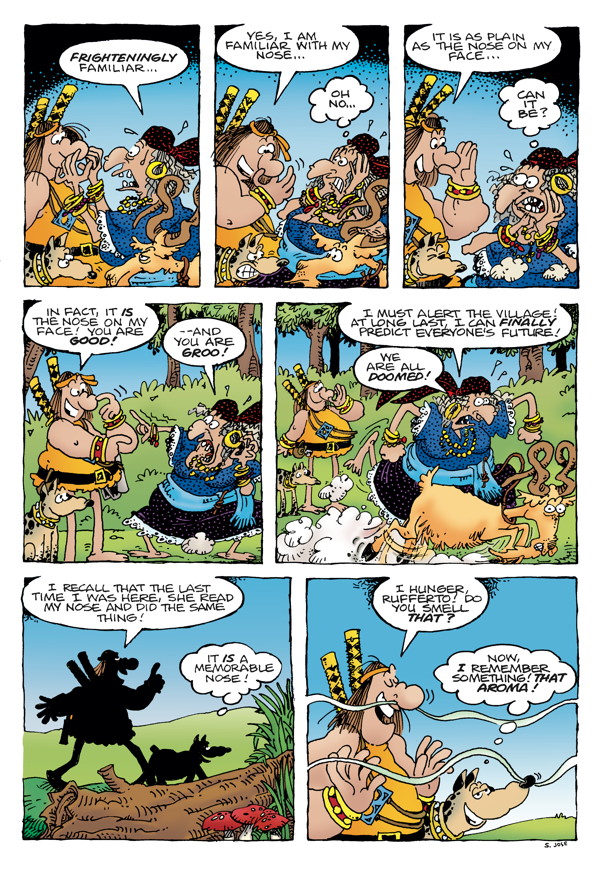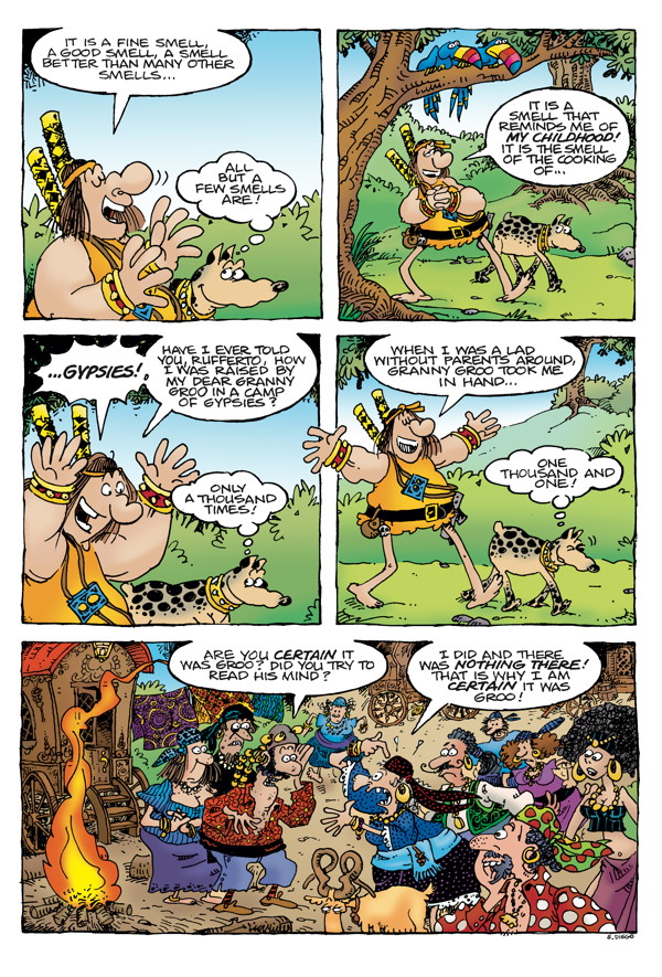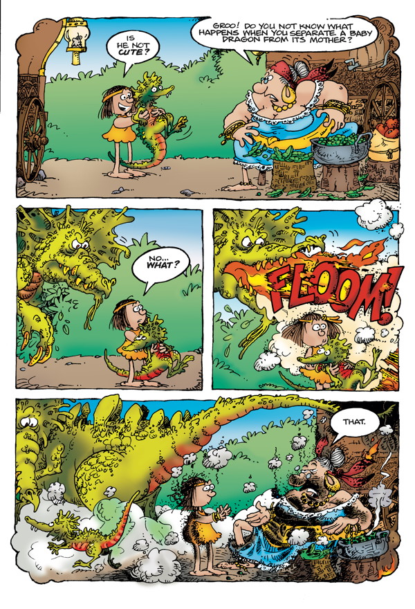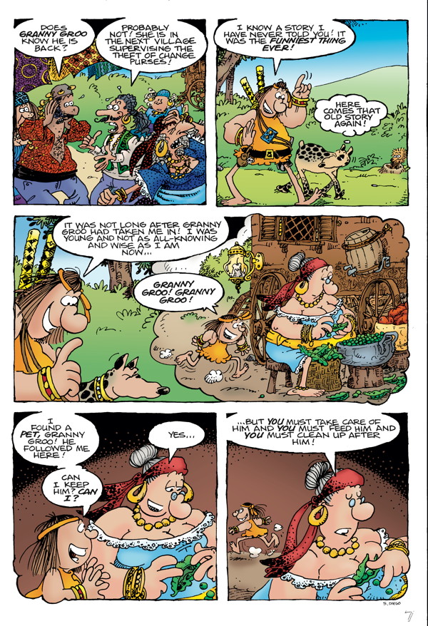 The Year of Groo continues! As Groo roams from town to town, wreaking his usual havoc, he runs into his beloved Granny Groo, who raised him from an inept young toddler to an even less-ept older idiot. Can she use Groo in a profitable scheme? Well, what do you think? From Sergio Aragonés and Mark Evanier, with Stan Sakai and Tom Luth!
