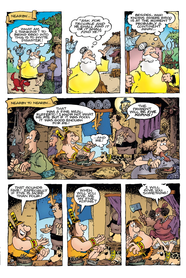 You’d think the smartest man in the world would be wise enough to not have Groo as a friend! The Sage has developed another scheme to amass wealth without working hard . . . but how clever can a scheme be that relies in any way on our hero? From the award-winning team of Sergio Aragonés and Mark Evanier.
