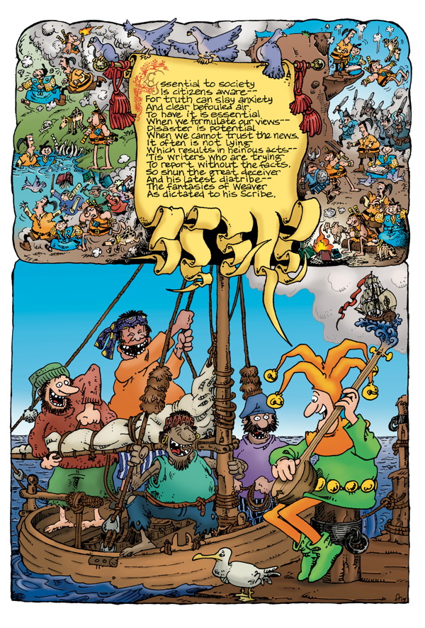 Let’s go to press! The most intrepid reporter in Groo’s world, Weaver, is back, accompanied as usual by his assistant, Scribe. This time, they try reporting the truth about Groo, but of course no one believes them. Concocted by the award-winning team of Sergio Aragonés and Mark Evanier, with letterer Stan Sakai and colorist Tom Luth!