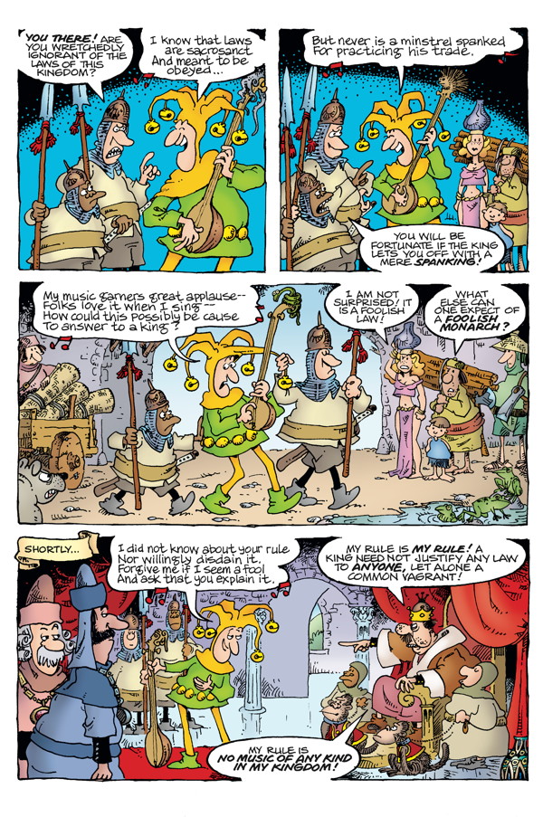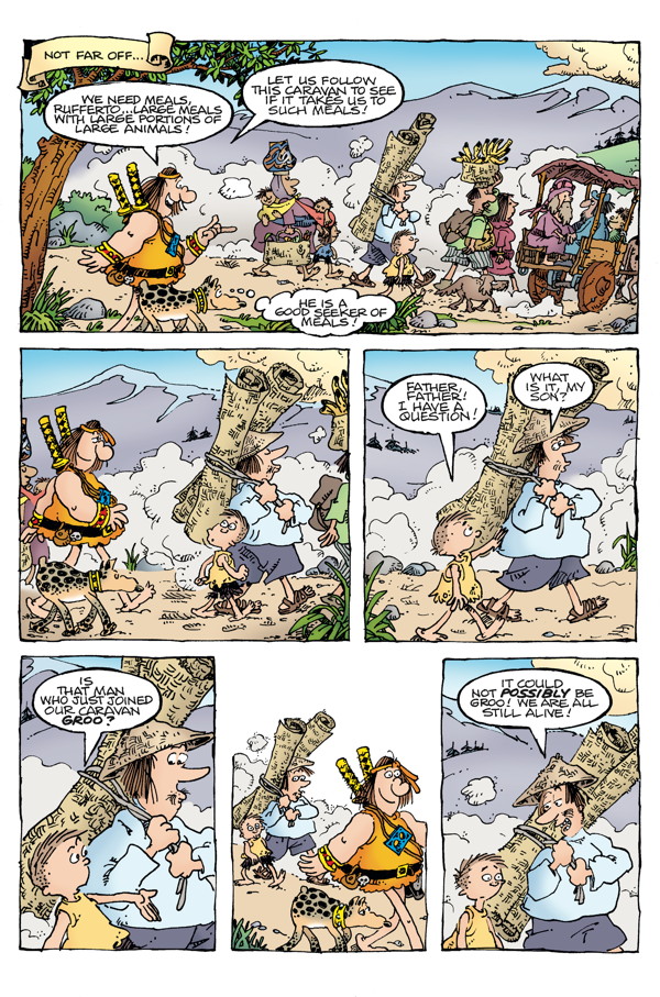 Groo’s yearlong journey is headed toward its barbaric conclusion! This issue spotlights the Minstrel, the bard who has told tales of Groo far and wide for years now . . . but even he doesn’t know how things will end as Groo ramps up the search for the long-lost father of little Kayli. As always, brought to you by the Eisner-nominated-again team of Sergio Aragonés and Mark Evanier, with Stan Sakai and Tom Luth.