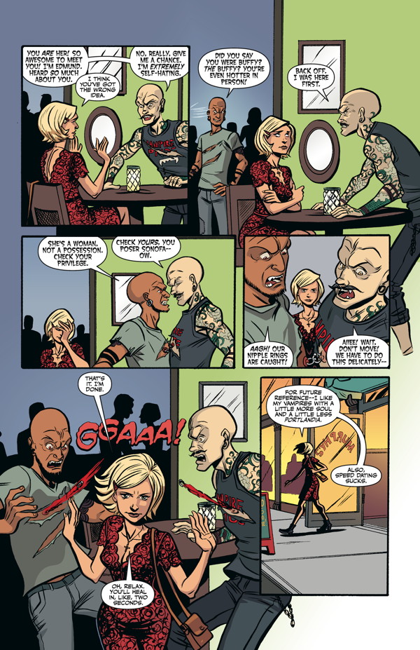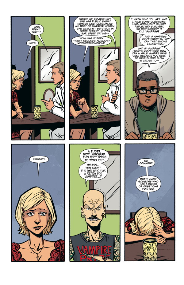 With the magical side of things momentarily under control, Buffy and crew have a chance to deal with their personal lives: things heat up between Xander and Dawn, young Giles is visited by an old flame, Andrew introduces some new friends, and the Slayer is totally set for round one of speed dating! Then the bad guy shows up.