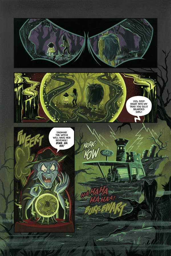 The flatulent witch wants her revenge, and with Lula and Chimichanga lost in her forest, there is no way they can escape her stink! Will Lula lose her glorious beard to the witch’s mystic potions—or will Ronny’s ugly face finally come to their rescue?