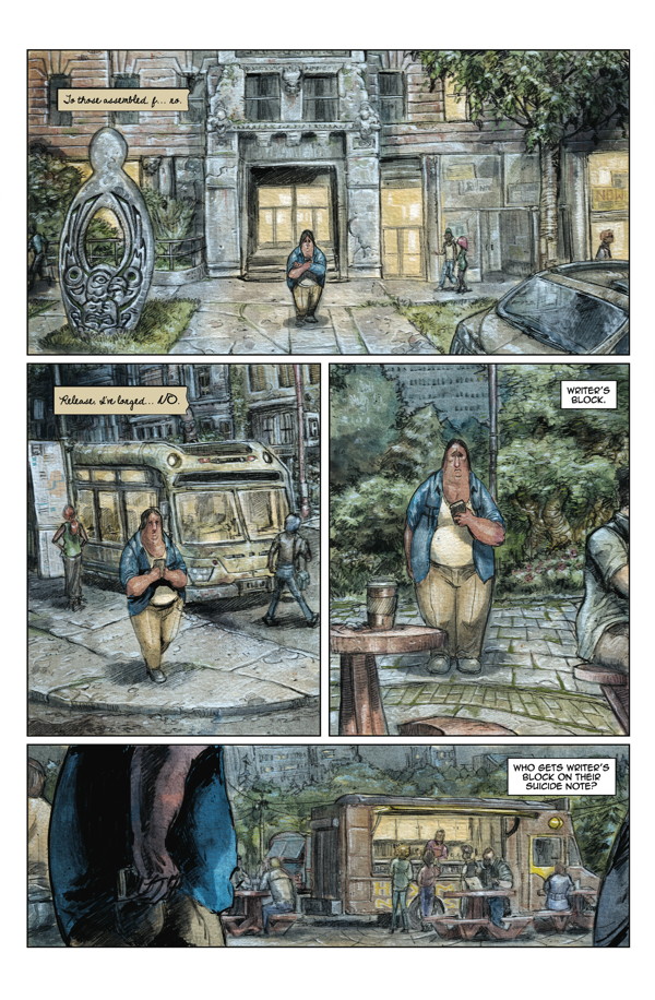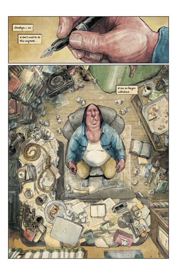 When one man’s writer’s block gets in the way of his suicide note, he goes for a walk to clear his head and soon uncovers a century-old conspiracy dedicated to creating and mining the worst lows of human desperation.