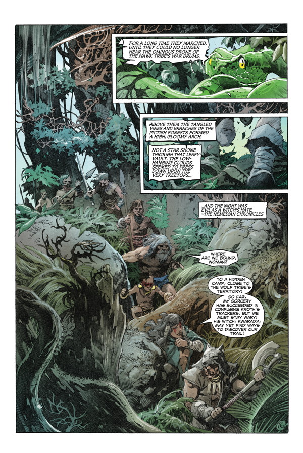 Returning a cursed Pictish crown to its true tribe, King Conan leaves the protection of his court in Aquilonia to prevent an invasion! In this expansion on Robert E. Howard’s unfinished “Wolves beyond the Border” tale, Conan joins forces with an old lover and her group of renegade Picts.