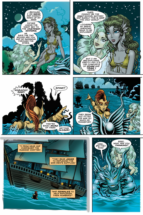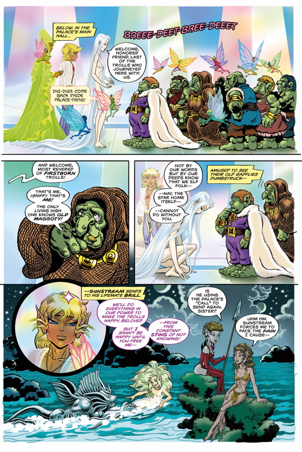 Only three issues left to go in the Final Quest story, and the peril ramps up to levels never before reached in ElfQuest. Out on the open waters, the Wavedancers renew their efforts to keep the seas free of human warships that carry deadly weapons. Yet even as the invaders press closer and closer to the sacred Father Tree, there is time for final farewells, for new lives beginning and old lives ending, as the Palace of the High Ones makes ready to depart the World of Two Moons . . . forever?