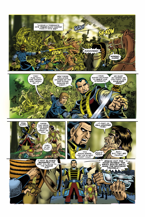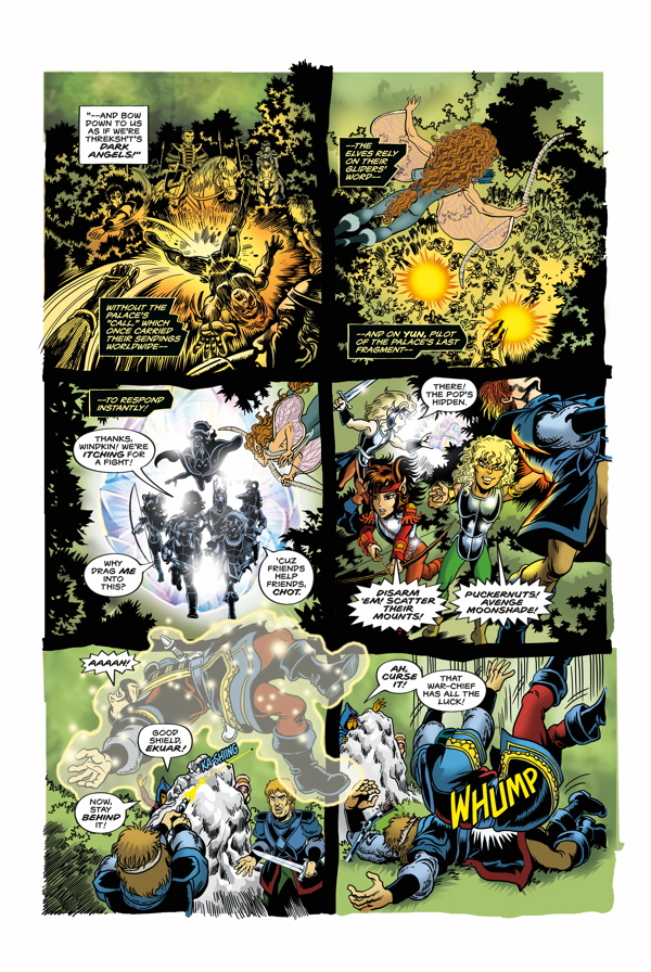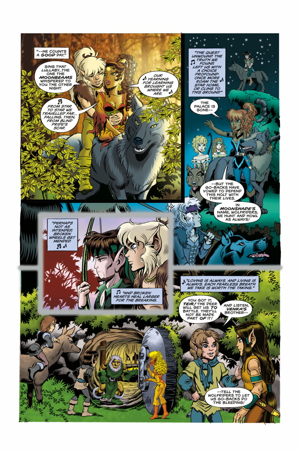 The penultimate issue in the ultimate Elfquest series! His forces decimated by Cutter's fierce warrior tribe, the fanatical human commander presses on, risking all to destroy the elves in their forest lair. Lives are lost on both sides. To stop the bloodshed, Cutter's adopted human daughter Shuna risks more than even she realizes. Should she fail, the price will be war everlasting among the native humans, the elves, and the Djunsland invaders. Must Wolfrider chief Cutter, having fulfilled his bond with High One Timmain, now witness the utter destruction of all that has brought him to this fateful moment?