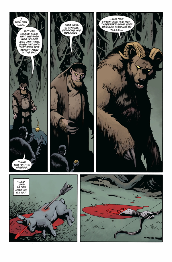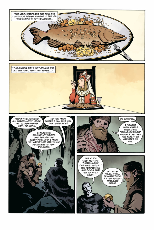 Now, in a pub somewhere in Hell, Koshchei tells Hellboy about a dangerous mission when the witch sent him to hunt and destroy the last dragons before their eggs hatched.