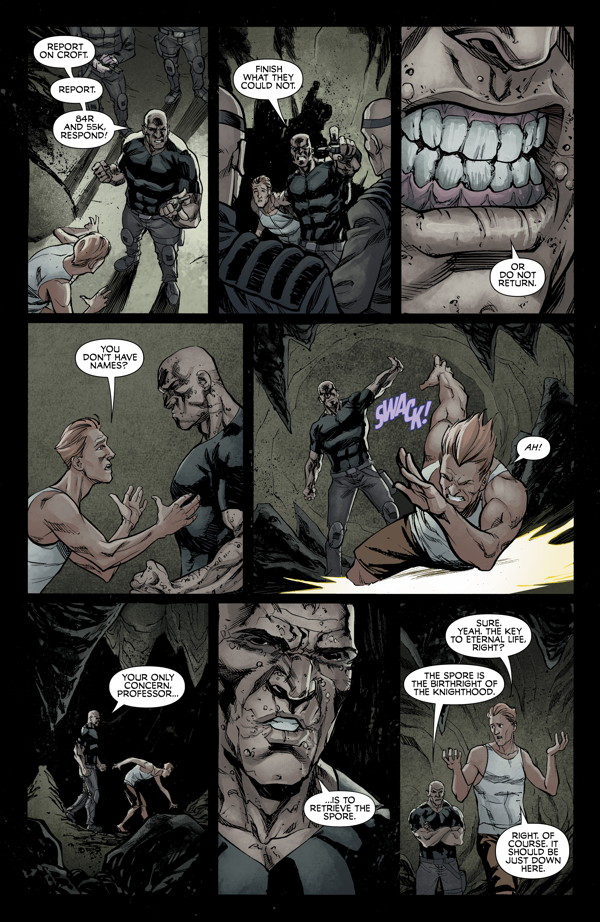 Lara arrives at a cave in pursuit of Professor Demur. He has been taken captive by the Knights of the Spore, who seek to use his knowledge to locate a mushroom to grant immortality!