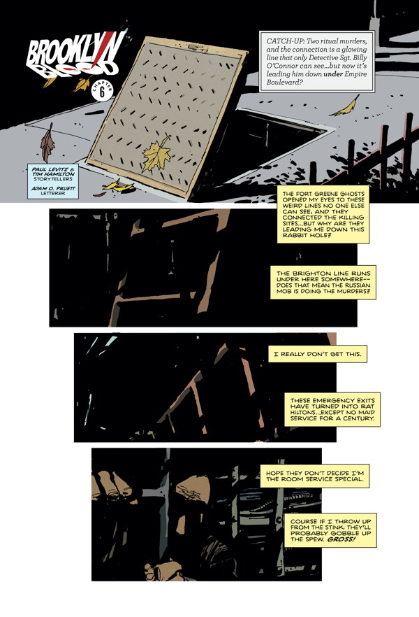 This issue also features the continuations of Carla Speed McNeil’s Finder: Chase the Lady, Paul Levitz and Tim Hamilton’s Brooklyn Blood, and Dennis Calero’s The Suit!