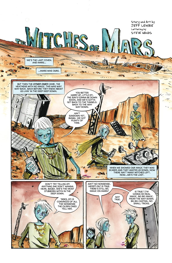In this issue of the Harvey Award–winning Dark Horse Presents, Jeff Lemire introduces readers to the last surviving coven of extraterrestrial witches in the heartbreakingly magical story The Witches of Mars!