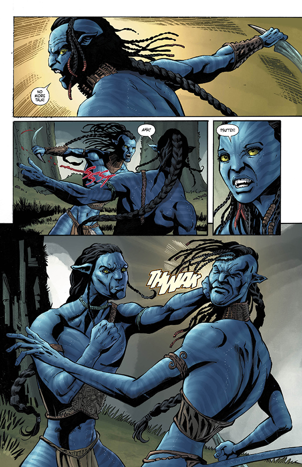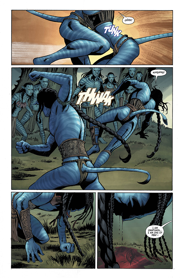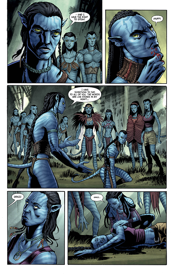 Passion turns to hatred as Tsu'tey and Jake Sully go blade-to-blade! But forces beyond their control have a different fate in store for them--and all of the Na'vi: the humans have come in their sky-ships, ready for a slaughter!