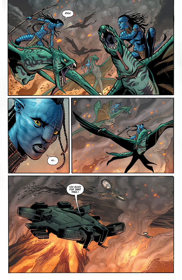 Hometree falls in a surge of roaring fire as the humans unleash the might of their airborne armada. Eytukan, the great chief of the Omatikaya, is dead, and Tsu'tey must assume the mantle of leader--even though it appears the only place he can lead his people is to their destruction!