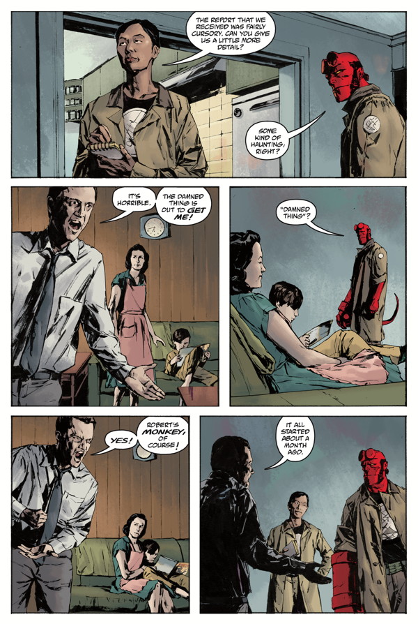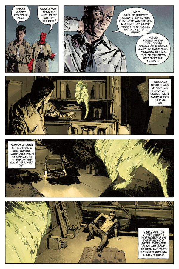 An unusual ghost hunt leads Hellboy to a spectral monkey with a message for a grieving family.