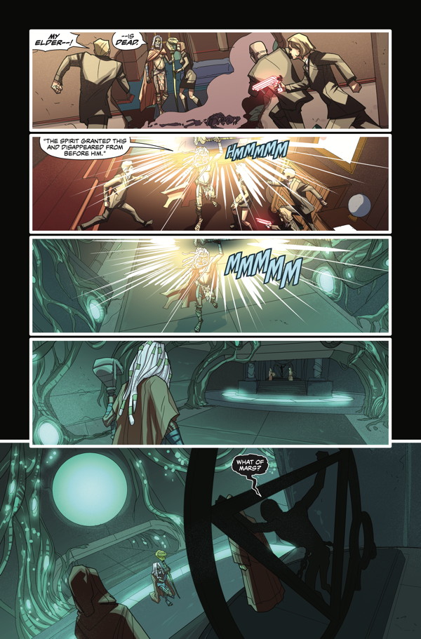 In the wake of tragedy, Grahame makes a desperate gamble for leadership of the Mars Family. But to do so, he must battle with his stepsister Temple for the Spear of Mars. Elsewhere, Bela’s document leak has brought her fame and attention, but she begins to question the motives of her new ally, Hum. Also: The Lizard Men attack!