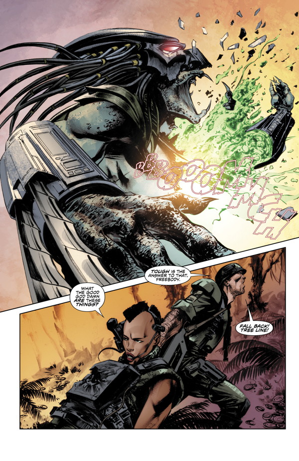 The Colonial Marines discover the corporate claim jumpers they’re protecting have been hiding what they know about the massive, horseshoe-shaped alien spaceship. Meanwhile, the Predators go on the offensive!