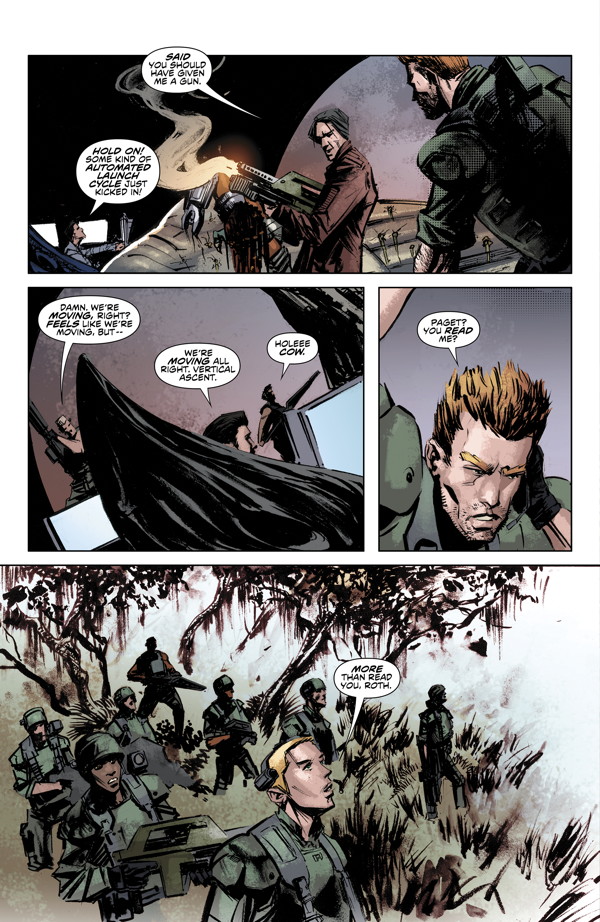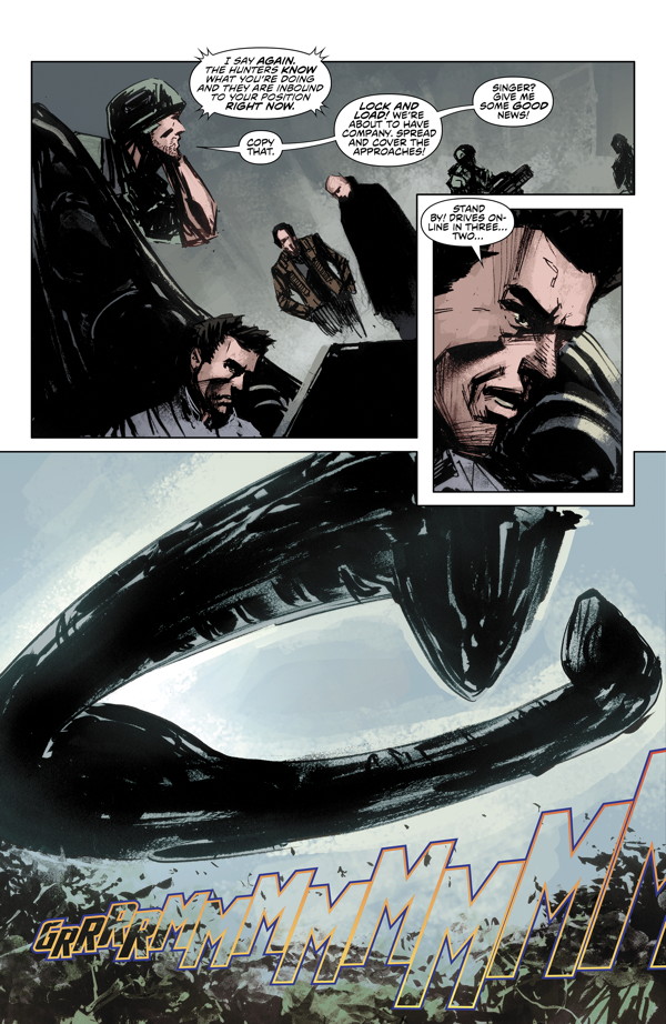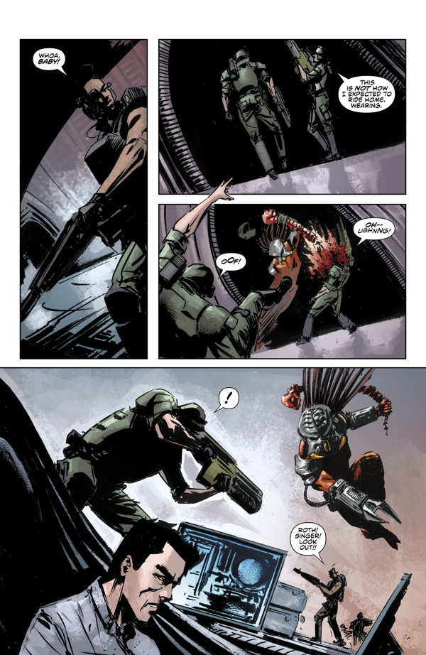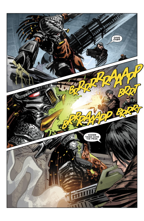 The battle between the Colonial Marines and the Predators opens on two fronts as the humans attempt to split the enemy’s force and take possession of the mysterious horseshoe-shaped alien spaceship! Getting their hands on the alien technology will be a huge victory for the humans . . . or will it?