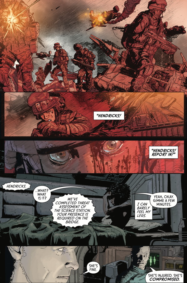 Colonial Marine Hendricks and the Weyland-Yutani synthetic Davis break protocol, navigating the Europa to a distant science station discovered in the once-derelict ship’s data records—a station that recently went dark. Following the trail of the alien species, they dive deeper into a conspiracy, uncovering just how much is riding on their choices.