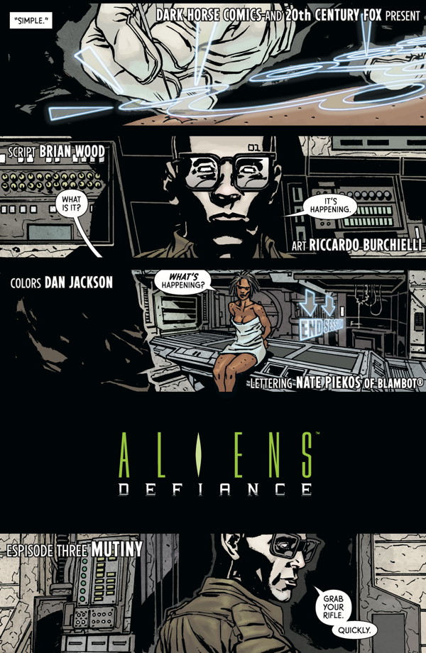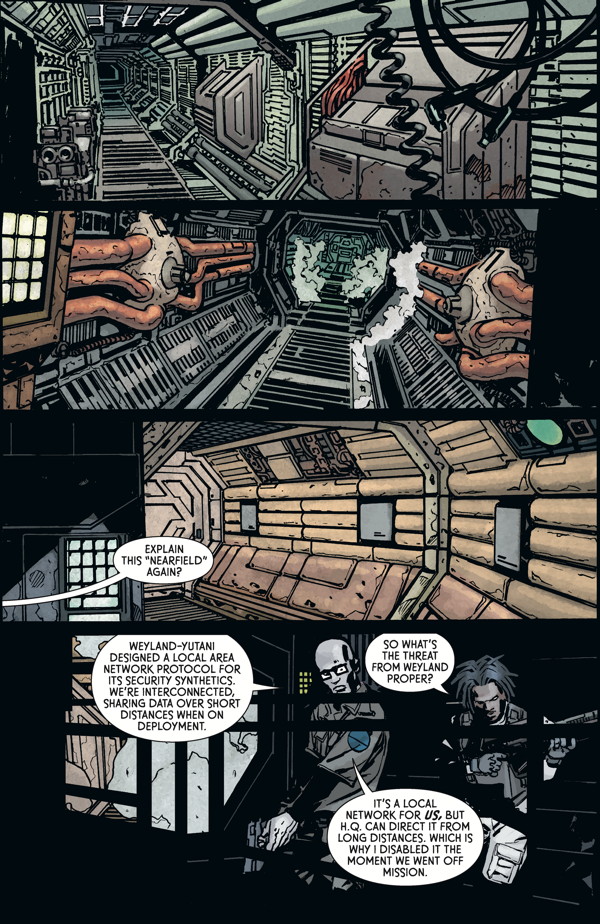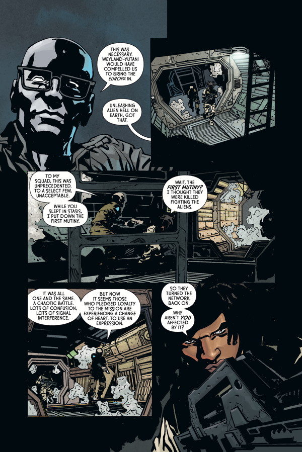 Mutiny aboard the Europa. After accessing a Weyland-Yutani network buoy which reprograms their directives, several Davis synthetics seek to take down the mysterious Davis 01 unit and take the ship back to Earth. Colonial Marine Zula Hendricks and Davis 01 must survive an organized tactical assault in deep space.