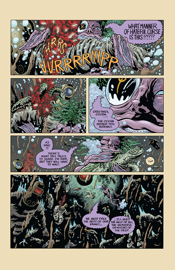 Trout's harrowing adventure comes to an earth-drenching conclusion. A huge tsunami has wiped out Giuseppe's village and along with it any hope he has of rescuing Trout. But a menagerie of fantastical sea creatures comes to the rescue and help our two heroes battle their past and embrace their future.